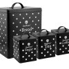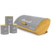 !! Čistíme sklady !! - velký výprodej za nejnižší ceny. Akce platí pouze do vyprodání zásob. Elegantní chlebník s netradičním designem v sadě s dózami na kávu, čaj a cukr.