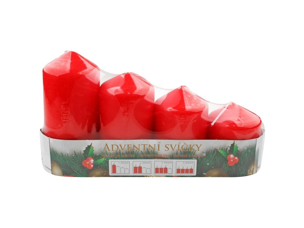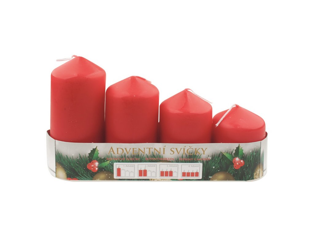Adventní svíce válec červená postupka 50, 75, 90, 105 x 50 mm, 4 ks