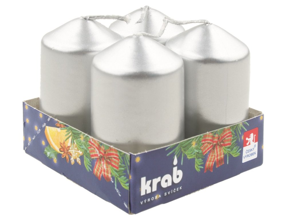 Adventní svíce válec stříbrný LAK 40 x 80 mm, 4 ks v sadě