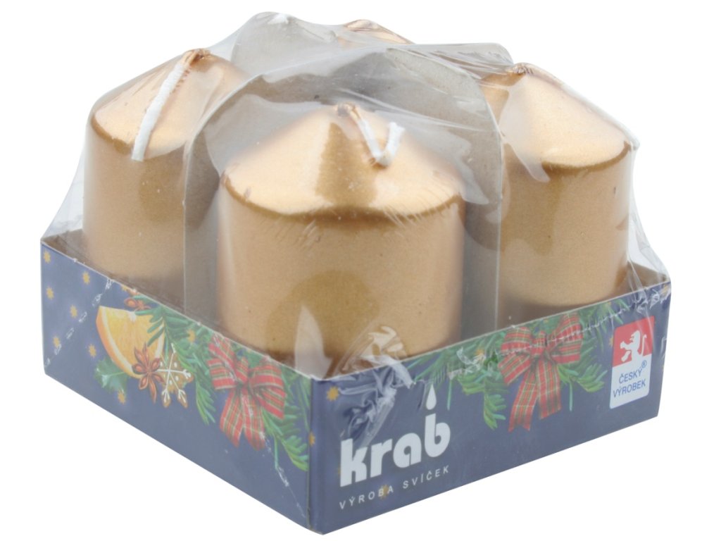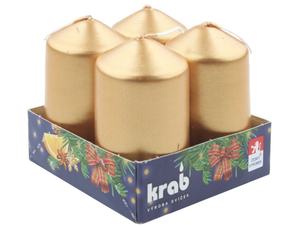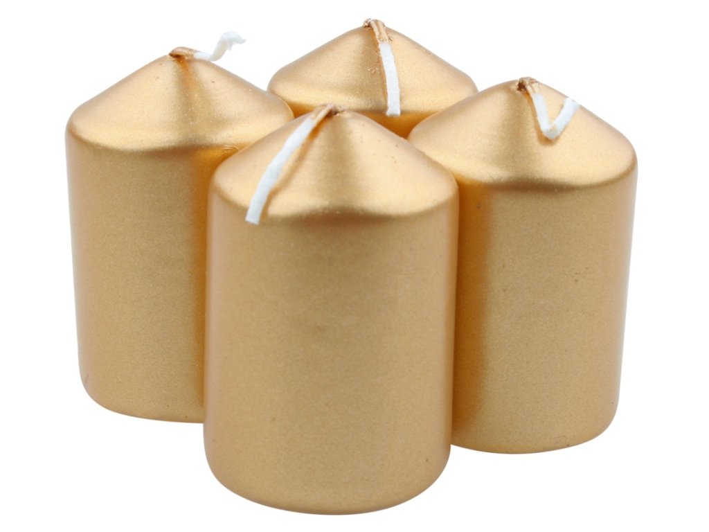 Adventní svíce válec zlatý LAK 40 x 80 mm, 4 ks v sadě