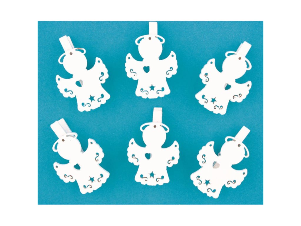 Anděl dřevěný na kolíčku 3cm, bílý, 6ks