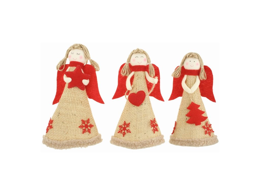 Anděl jutový na postavení 19 cm, s červenými křídly