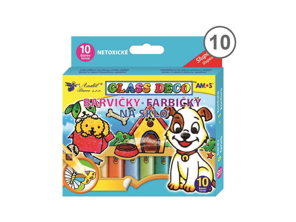 Barvy na sklo sada 10 barev 10,5 ml + fólie a šablony