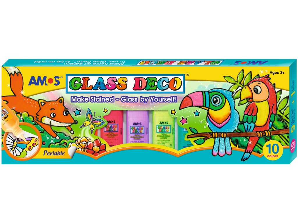 Barvy na sklo sada 9 barev 22 ml + 1 černá kontura 40 ml + šablony, fólie