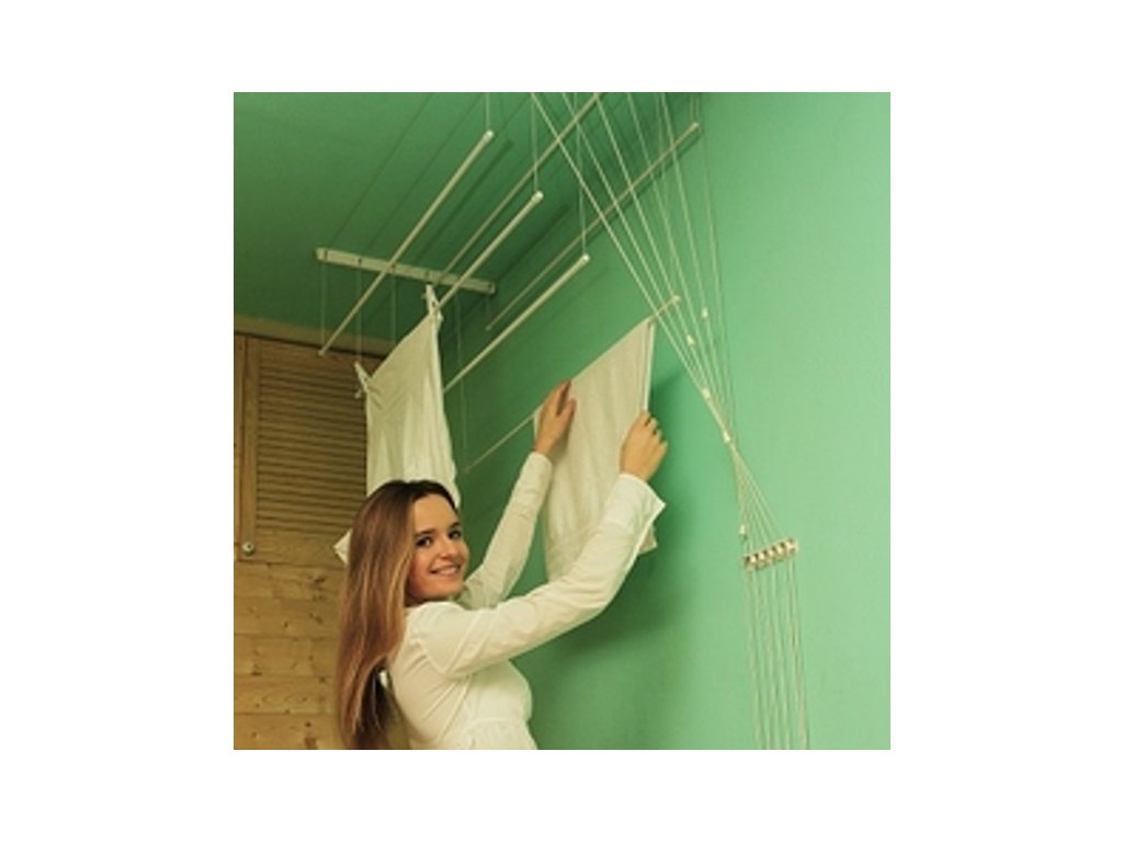 Výšku, ve které chcete prádlo věšet, si určíte sami. Až budete mít prádlo pověšené, jednoduše ho pomocí systému kladek vytáhnete ke stropu - opět do vámi určené výšky.