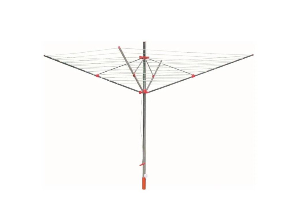 Venkovní čtyřramenný sušák na prádlo s celkovou sušící délkou 50 metrů je praktickým pomocníkem do každé zahrady. Díky pevné hliníkové konstrukci zajišťuje vysokou stabilitu a dlouhou životnost. Montáž do země je zajištěna pomocí zemní objímky, která je součástí balení.