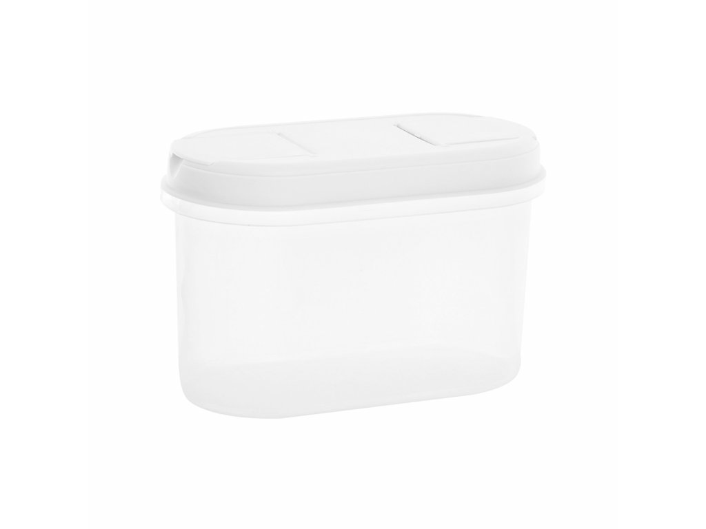 Plastová sypací dóza s víkem. Opatřena odklápěcím víkem pro snadné dávkování.
