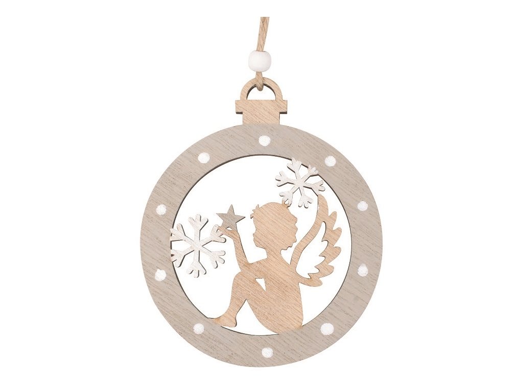 Dřevěná baňka s andělem přinese do vašich Vánoc pohodu, eleganci a kouzlo tradiční výzdoby.
