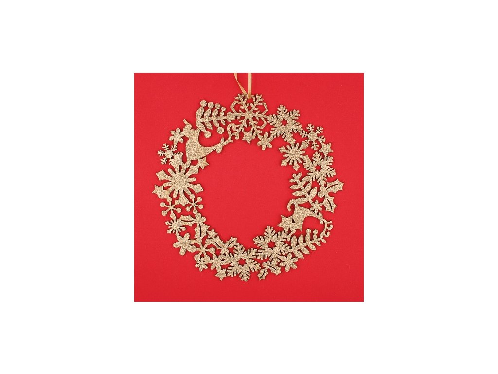 Dřevěný věnec zlatý glitrový 23 cmDoplňkové parametry
