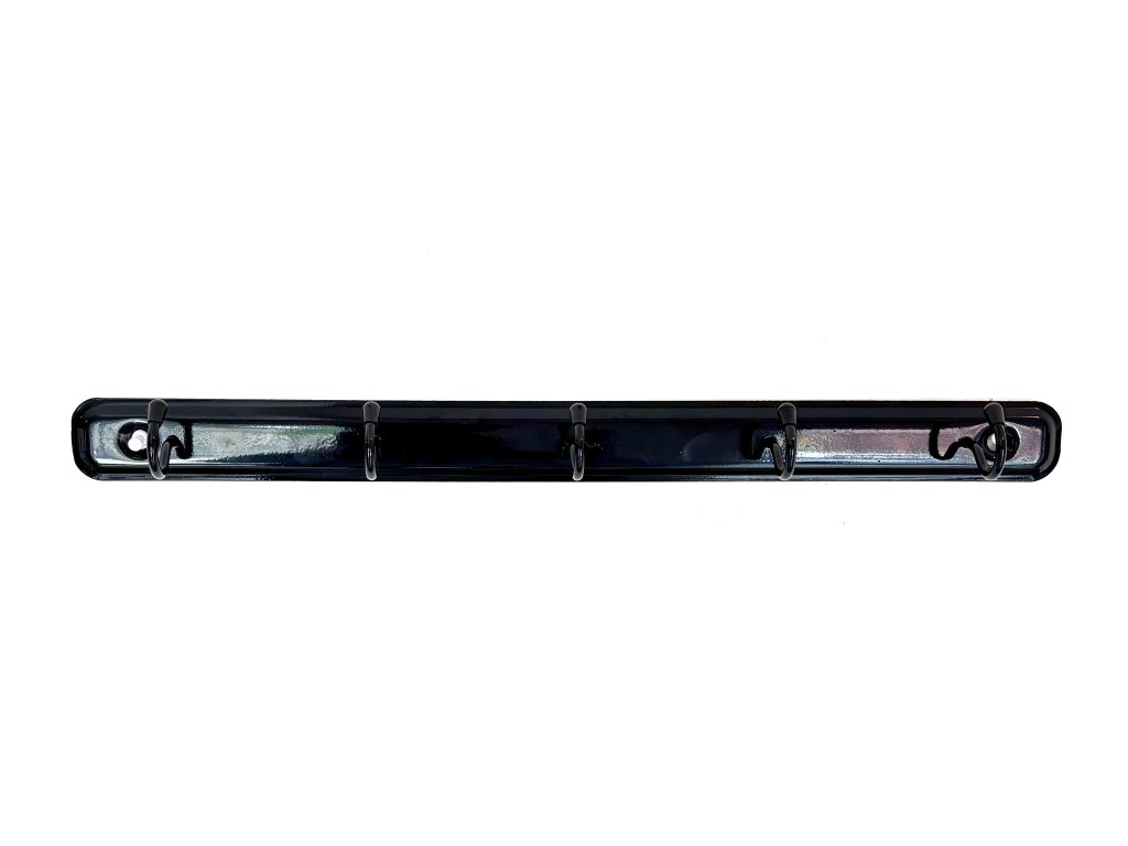 Černý držák prádelních šňůr o délce 50 cm s 5 háčky. Vhodný pro venkovní i vnitřní použití – na balkony, lodžie i do koupelen. Konstrukce z oceli zajišťuje vysokou pevnost a odolnost vůči běžnému zatížení.