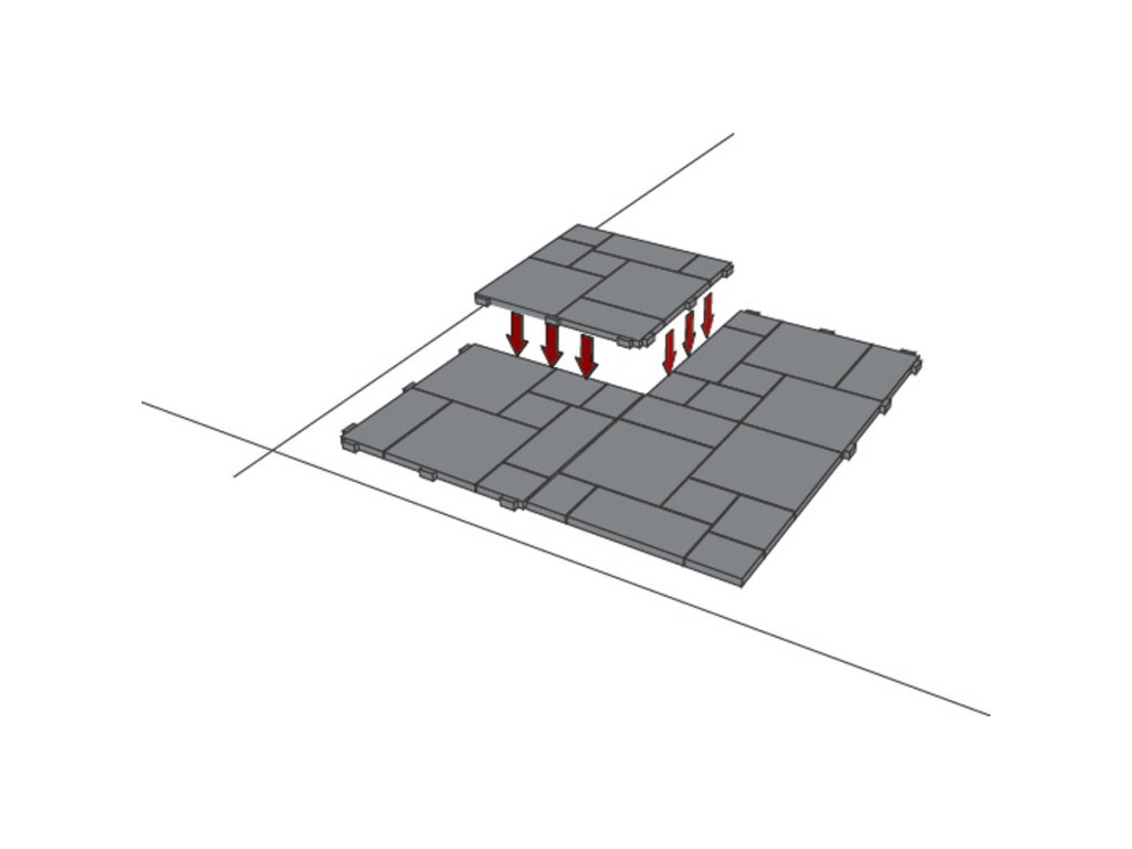 Sháníte novou dlažbu na balkon, terasu nebo zahradu? Dlaždice Stone Mosaic jsou ideálním řešením pro obnovu opotřebovaných podlah. Jsou vyrobeny z recyklované gumy, což zaručuje vysokou odolnost a dlouhou životnost. Pokládka je velmi jednoduchá - dlažba se upevňuje pomocí bočních spojovacích háčků, tzv. systémem Quick - Click. Podlahu můžete mít položenou během pár hodin nebo za jedno odpoledne - záleží na velikosti prostoru, kam dlažbu budete pokládat. Dlaždice mají praktické drážky, které slouží pro odtok přebytečné vody - voda se neshromažďuje mezi dlažbou a zemí a nevznikne plíseň. Dlaždice naopak nemají ostré hrany - v létě při vyšších teplotách se nezačnou bořit do měkkých izolačních pásů.