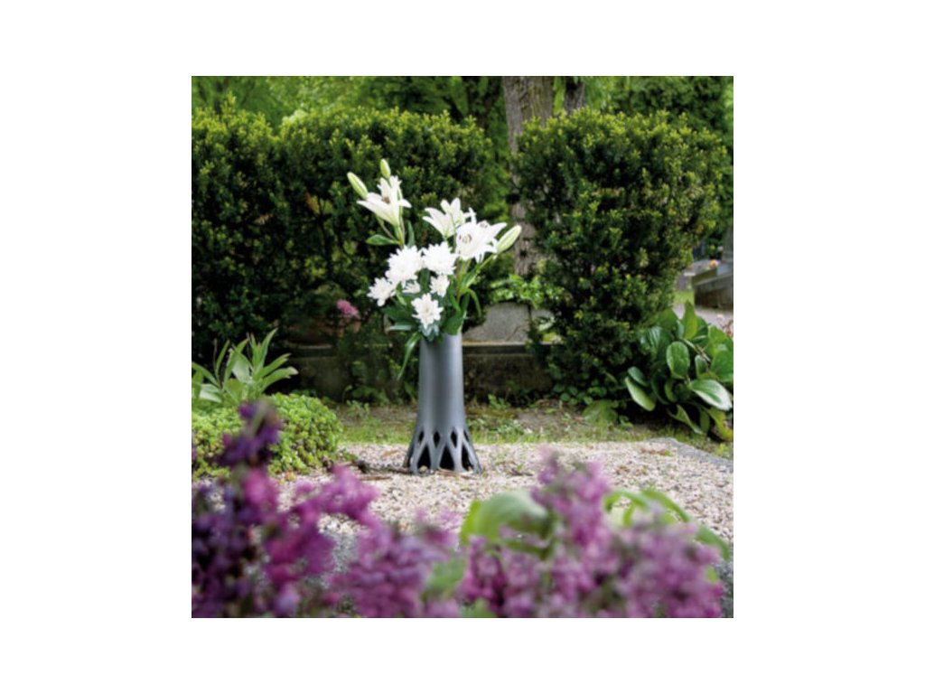 Hřbitovní váza z odolného a kvalitního plastu je opatřena zápichem pro vysokou stabilitu i v nepříznivém počasí.