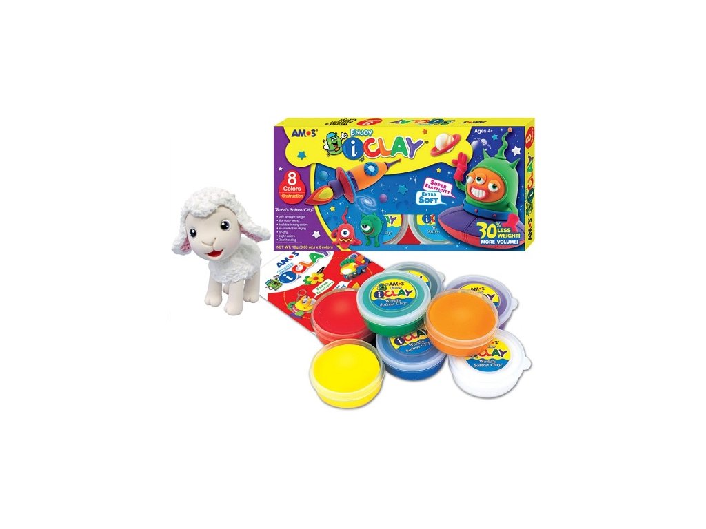 I-Clay modelovací hmota schnoucí 8 barev v kelímcích po 18 g Nejlehčí modelovací hmota na světě! Schne na vzduchu, nelepí se na ruce a je netoxická. Jemná, velmi lehká, vynikajicí kvality, po zaschnutí nepraská. Jasné barvy lze namíchat do mnoha odstínů. Obsah balení: 8 kelímků po 18 gramech + informační letáček. Návod: Ideální pro výrobu figurek, ozdob, bižuterie apod. Dříve než hmota zcela uschne, je možné ji vodou změkčit a přemodelovat. Výtvory lze dozdobit lepícími glitry a pohyblivýma očima. Hmota uschne na vzduchu. I během použití uchovávejte v uzavřené nádobce nebo sáčku, aby hmota nevyschla.Doplňkové parametry