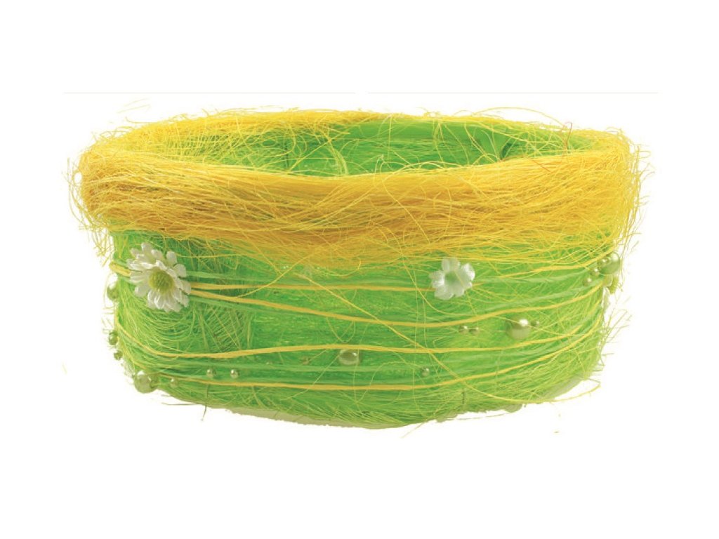 Jarní košíček ze sisalu s kopretinkami a perličkami 18cm