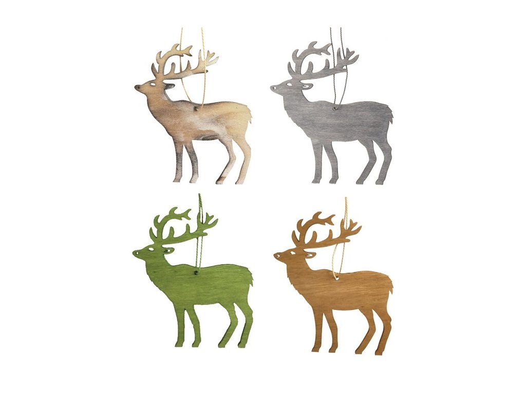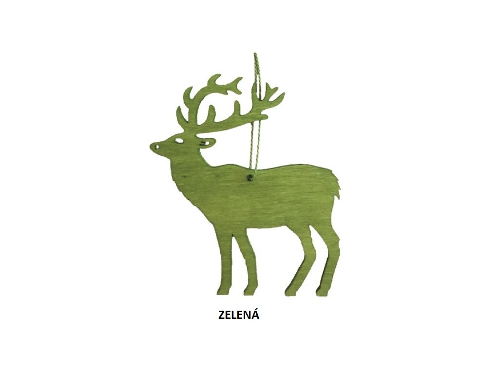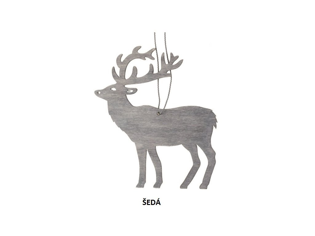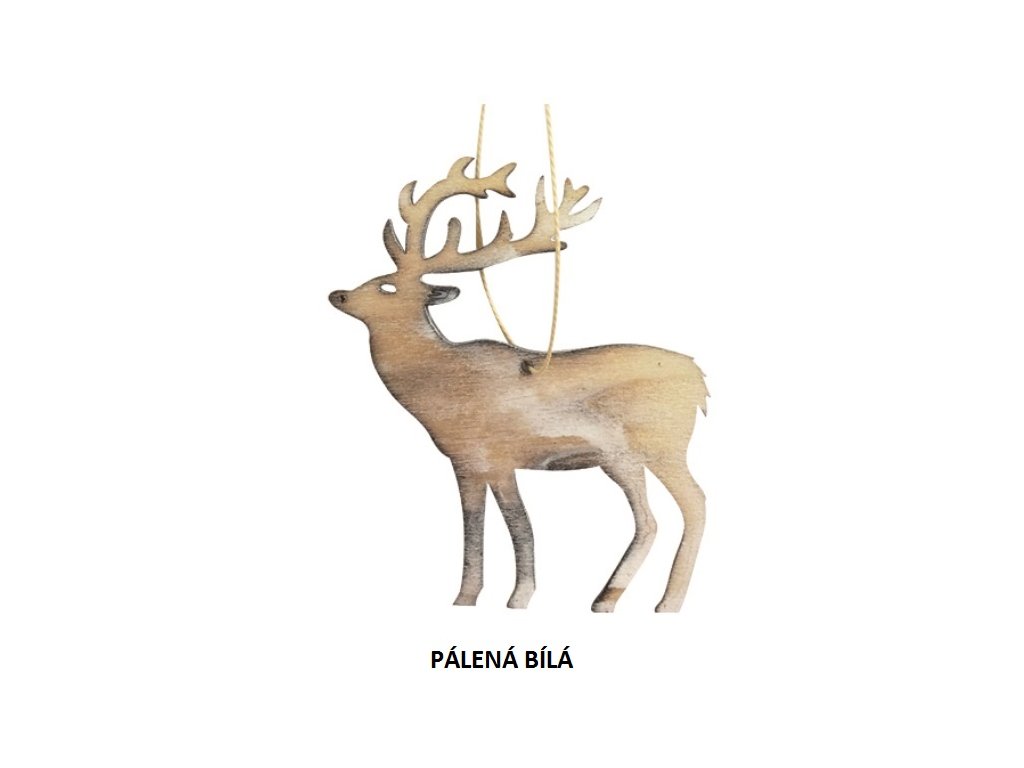 Dřevěný jelen závěsný. Velikost: 10 cm Barva: pálená bílá, šedá, zelená, přírodníDoplňkové parametry