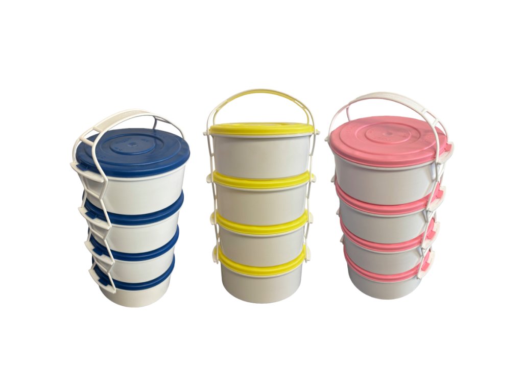 Jídlonosič má 4 misky o objemu 1litr. 1 miska je v průměru 15,5 cm s výškou 7 cm.