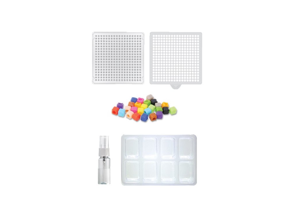 Obsah balení: 1. 780 korálků - kostiček 2. podložka na korálky 3. lahvička s rozprašovačem 4. obrázkové předlohy 5. podnos na třídění korálků Návod: 1. Připravte si podložku na korálky, na ni položte dírkovanou fólii. Pod podložku na korálky umístěte obrázek. 2. Přenášejte korálky-kostičky na fólii, napichujte na hroty a vytvořte obrázek. 3. Naplňte lahvičku vodou a hotový obrázek postříkejte, korálky se spojí. 4. Po uschnutí obrázek sejměte z fólie. TIP! Obrázek bude pevnější, když ho po zaschnutí jedné strany postříkáte vodou i z druhé strany a opět necháte úplně uschnout. TIP! Částečně proschlý obrázek přikryjte vinylovou fólií a přikryjte těžkou knihou, aby se narovnal a zpevnil. Ruce i pracovní plochu po skončení umyjte vodou.Doplňkové parametry