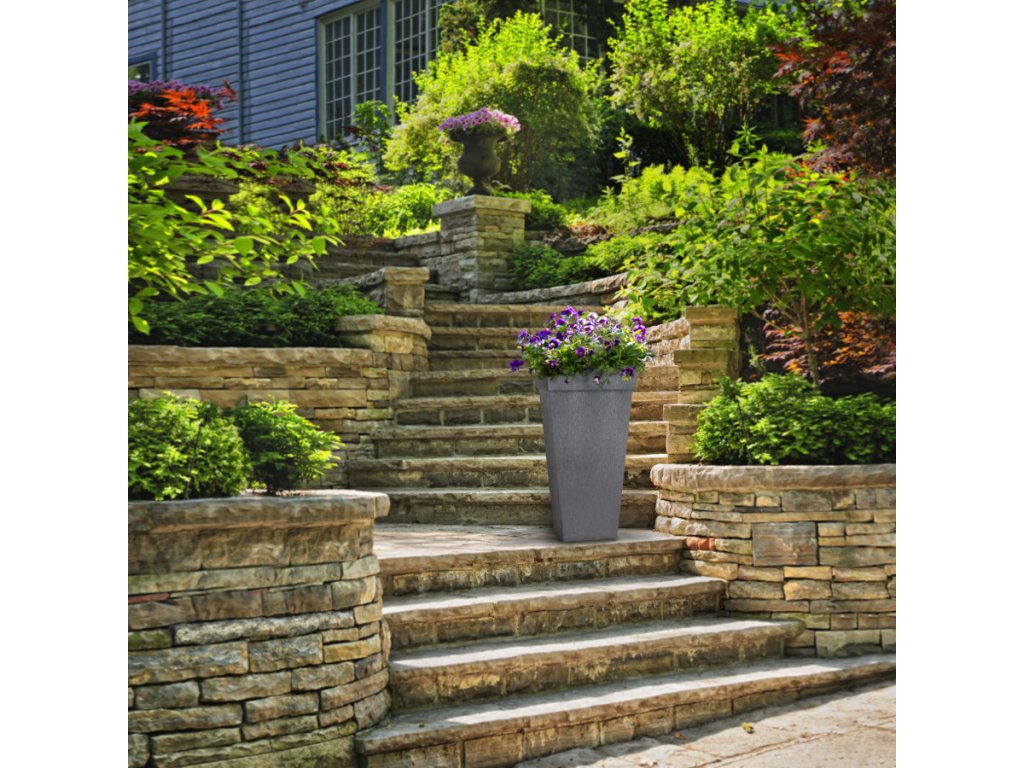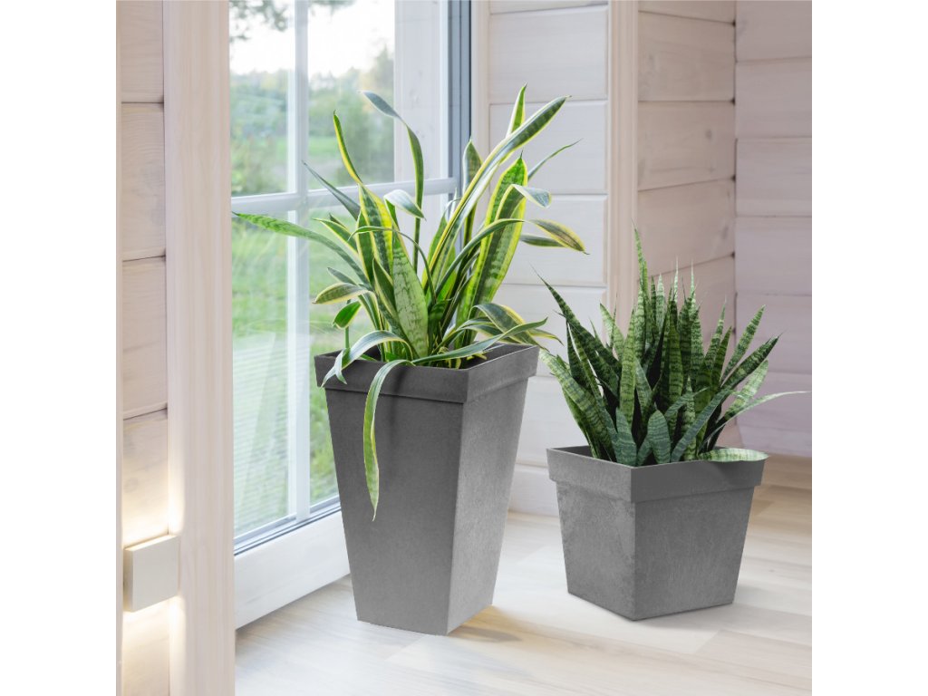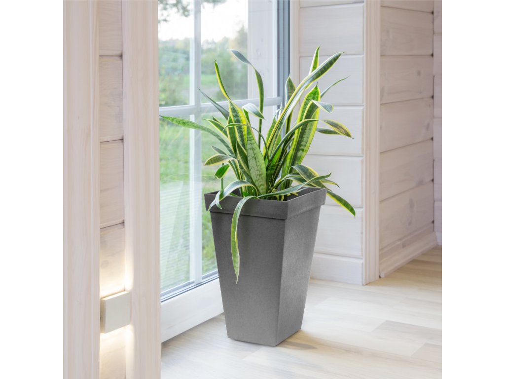 Květináč z recyklované gumy SYMPHONY vysoký, 27,5 x 27,5 x 50 cm - barva šedá