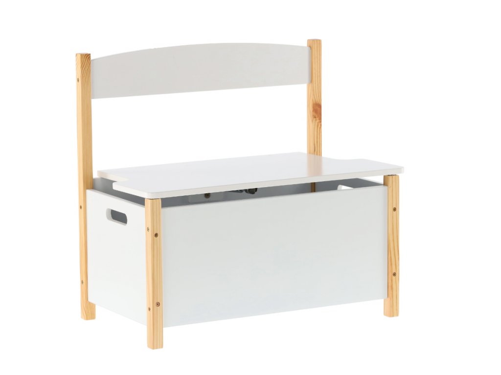 Praktická lavice dětská s úložným prostorem v jednoduchém designu. Praktická bílá barva s přírodním dřevem bude barevně ladit do každého pokojíčku.