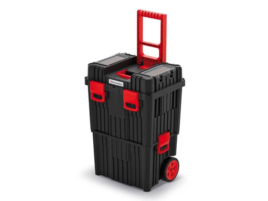 Díky přepravním kolečkům je manipulace s kufrem snadná i v případě, že převážíte těžší vybavení. Promyšlená modulární konstrukce umožňuje kufr kombinovat a stohovat s dalšími boxy Prosperplast, takže získáte přehledný a prostorově úsporný systém na veškeré nářadí.