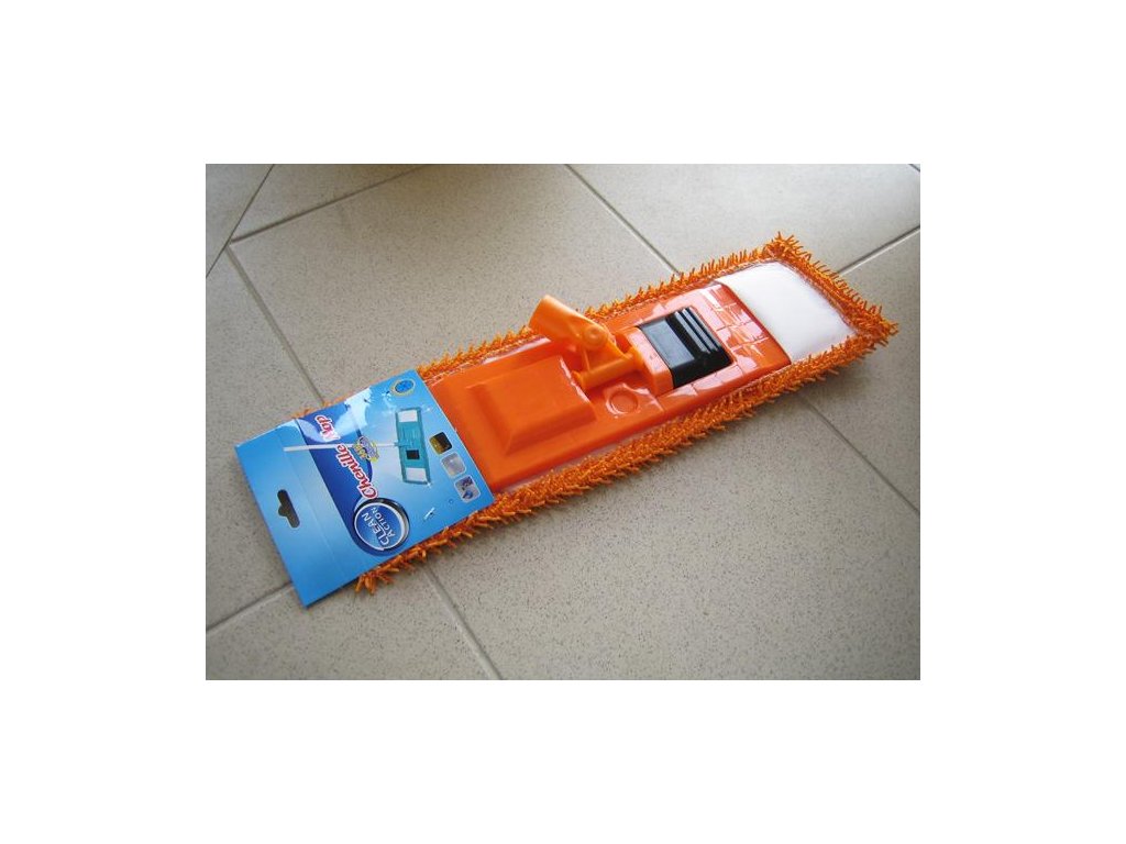 Mop s mikrovláknem a teleskopickou tyčí 75/130 cm otočnou o 360st., použití nasucho i namokro, i bez čistících prostředků.