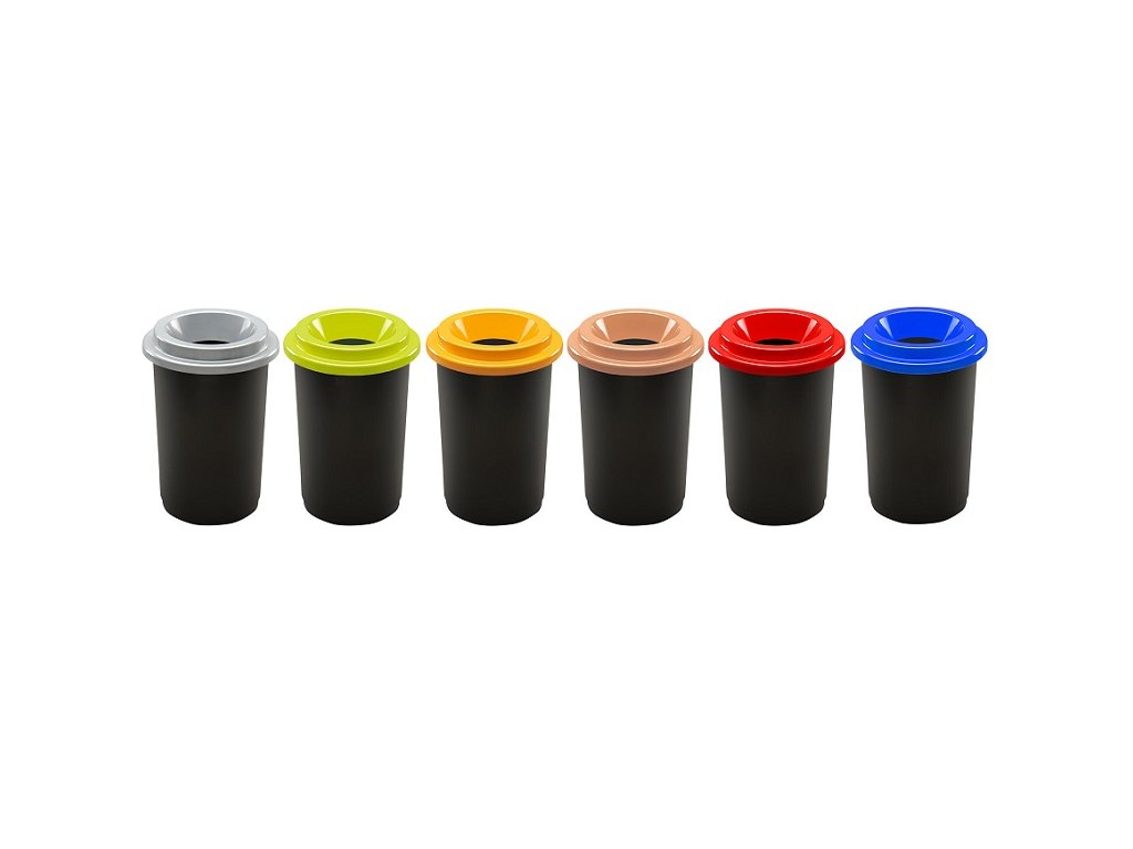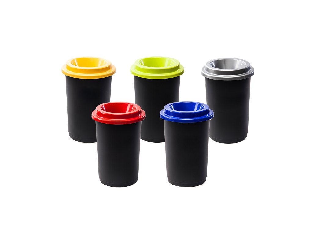 Plastový odpadkový koš s odnímatelným víkem s otvorem. Barevná víka pomohou s tříděním odpadu.