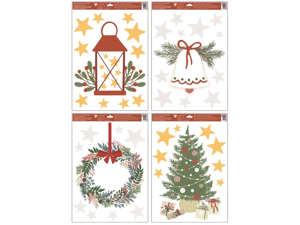 Okenní fólie barevné vánoční dekorace s glitry 35 x 50 cm