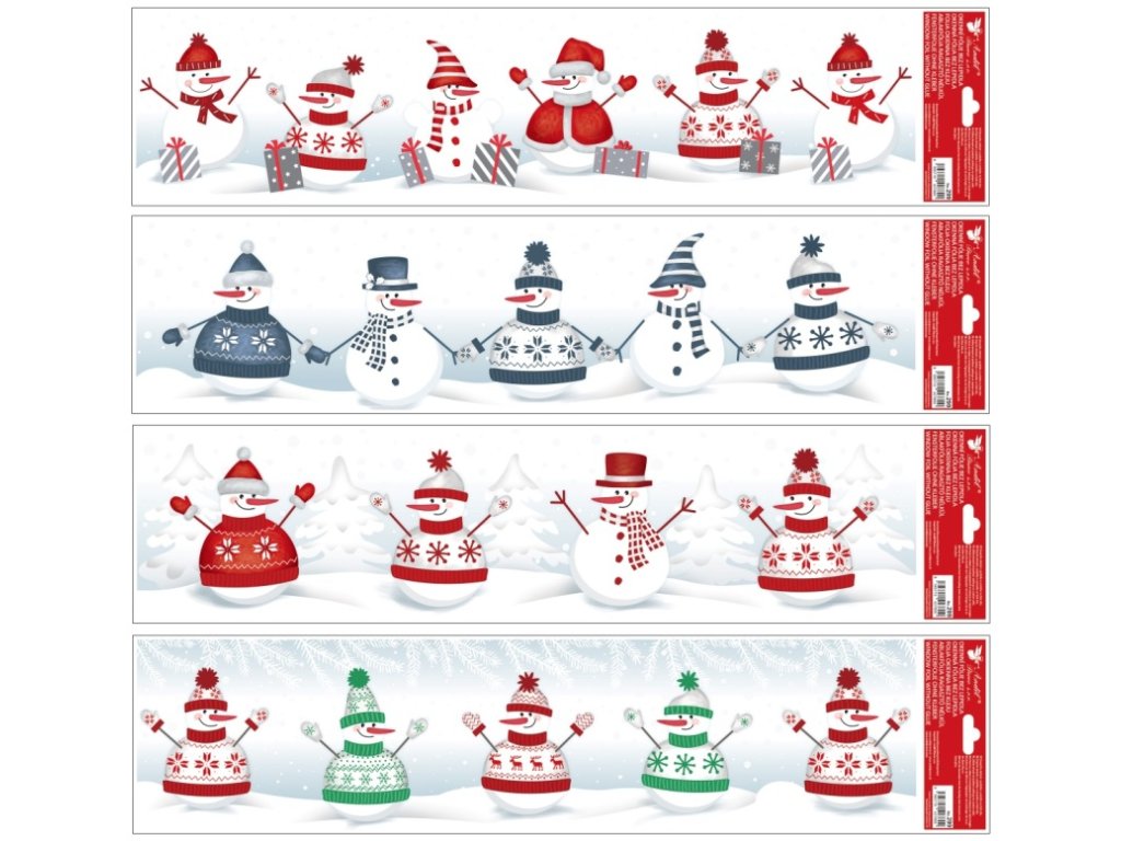 Dekorační okenní fólie – pruh, Sněhuláci