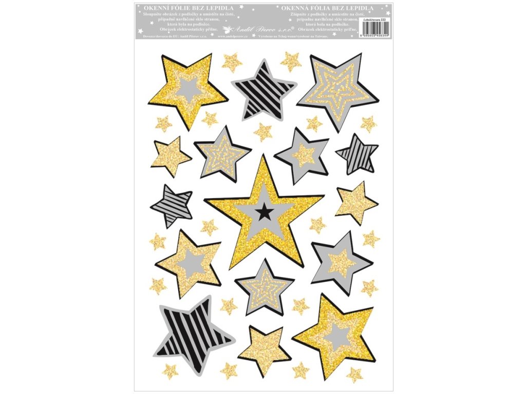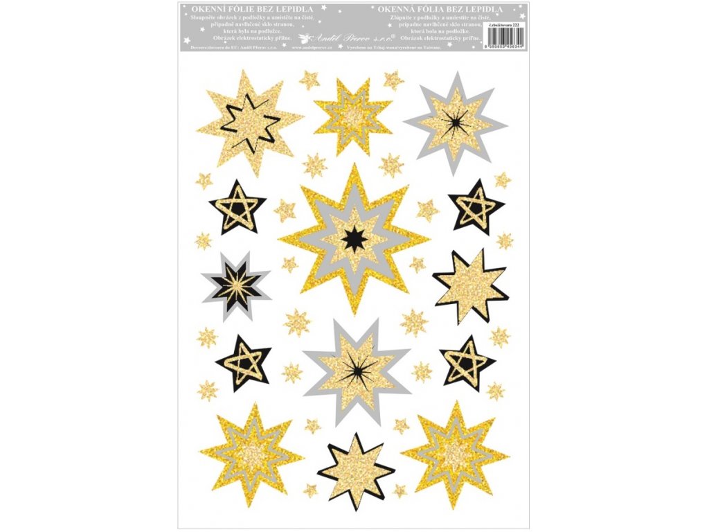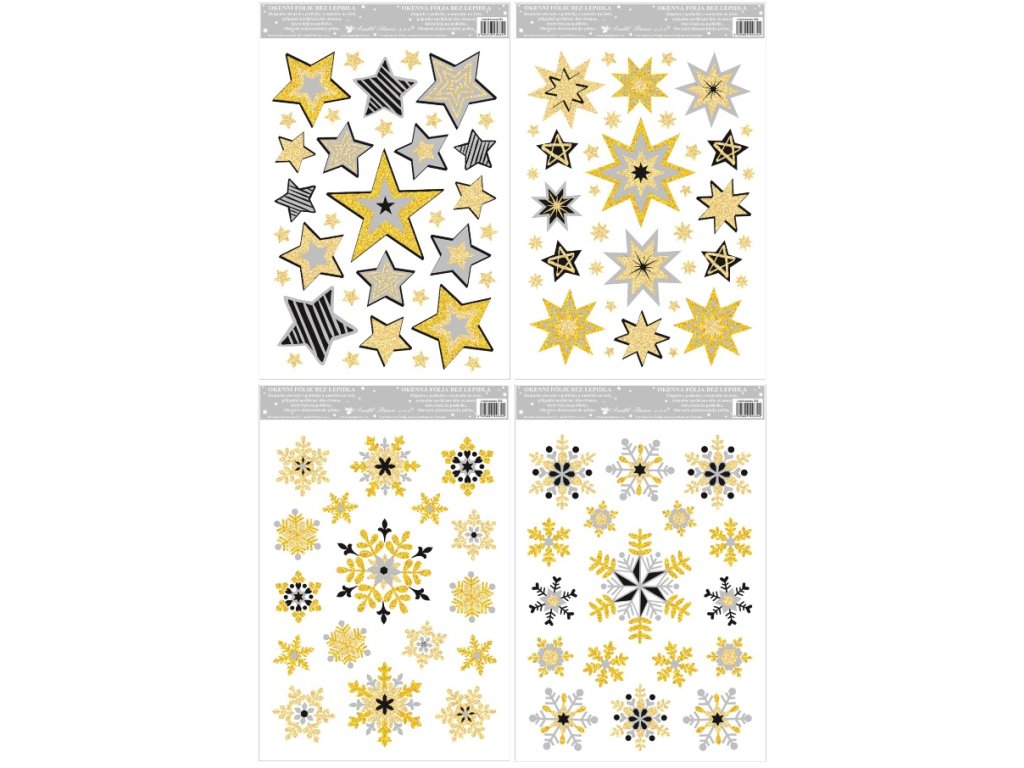 Okenní fólie s glitrem 30x20 cm hvězdy a vločky