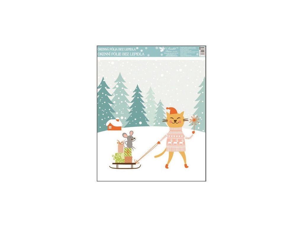 Okenní fólie s glitrem zvířátka v zimě 29x24 cm