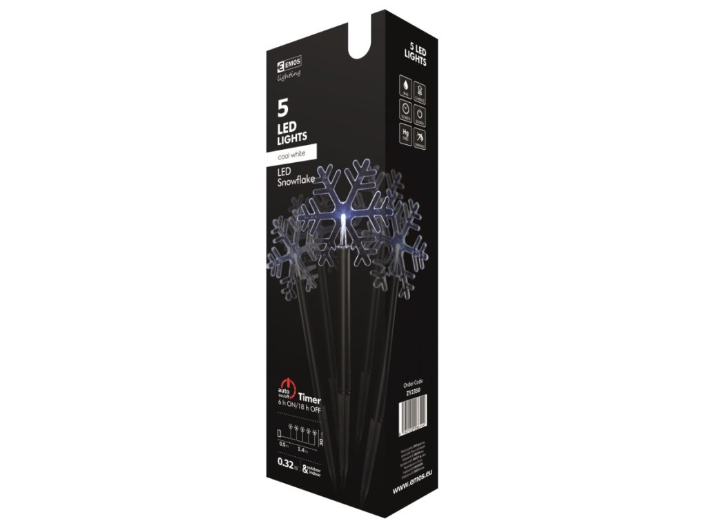 Osvětlení vločky zápich 30 cm, 5 LED, studená bílá + časovač