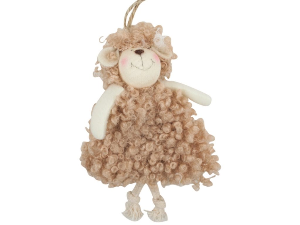 Ovečka hnědá kudrnatá 13 cm na zavěšení