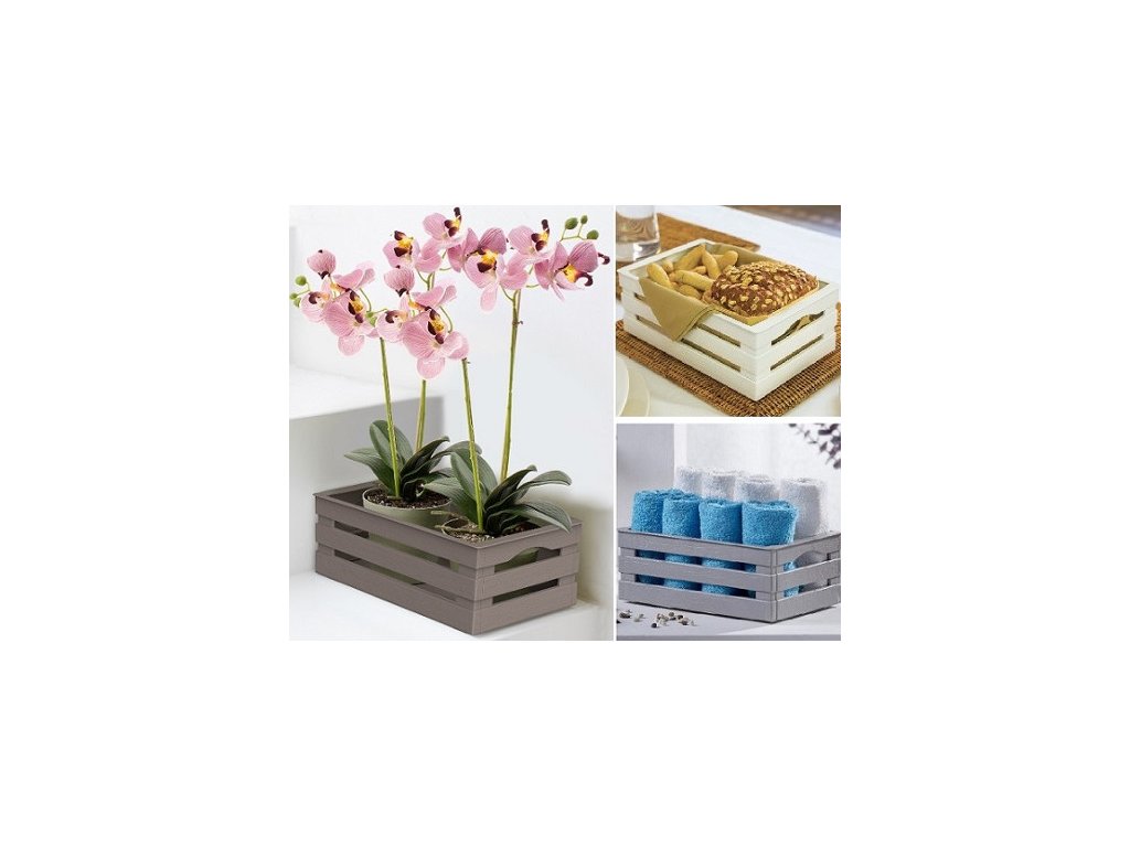 Víceúčelová plastová bedýnka v dřevěném dekoru bude pěkně vypadat v kuchyni, koupelně nebo na zahradě. Tato malá bedýnka má opravdu široké využití, můžete do ní ukládat hračky, potraviny, malé ručníky, květiny nebo jakékoliv domácí potřeby, např. tužky nebo videohry. Bedýnka je stohovatelný s ostatími bedýnkami Tina. Barvy: bílá, hnědá Rozměr: délka: 31 cm šířka: 41 cm výška: 14 cmDoplňkové parametry