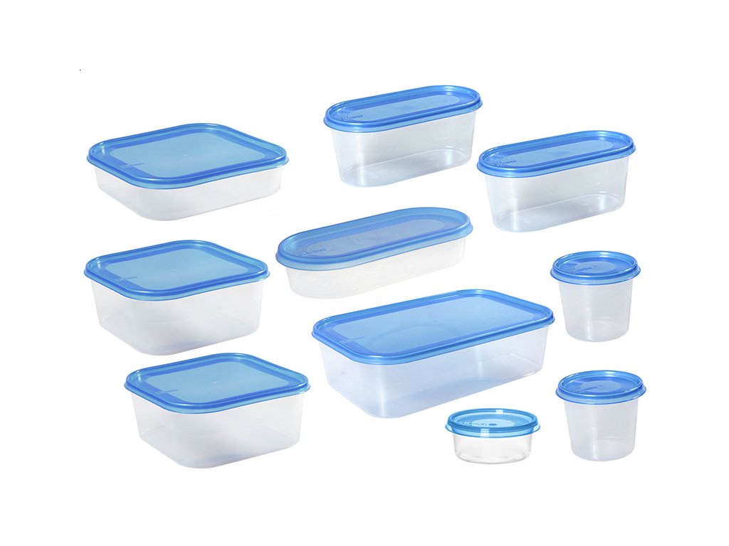 Průhledná plastová miska s modrým víkem vhodná do mrazničky, mikrovlnné trouby. Plastový box s dobře těsnícím víkem vhodná pro skladování potravin v lednici i mrazícím boxu.
