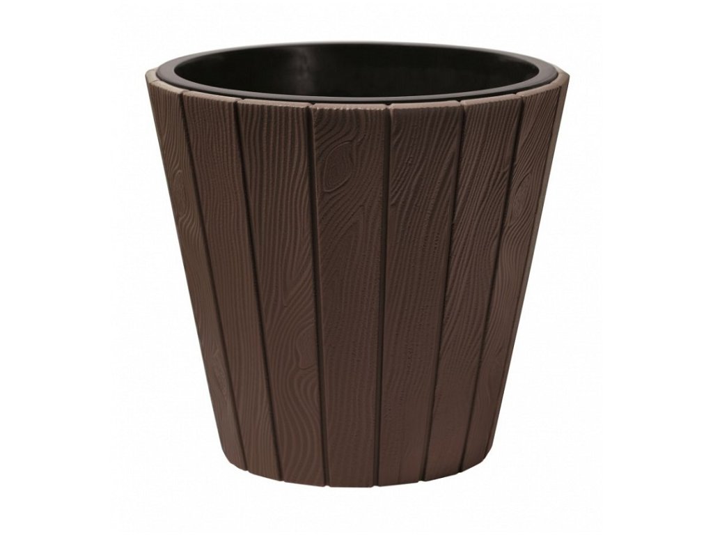 Plastový květináč venkovní Woode s imitací dřeva, pr. 40 cm - barva hnědá