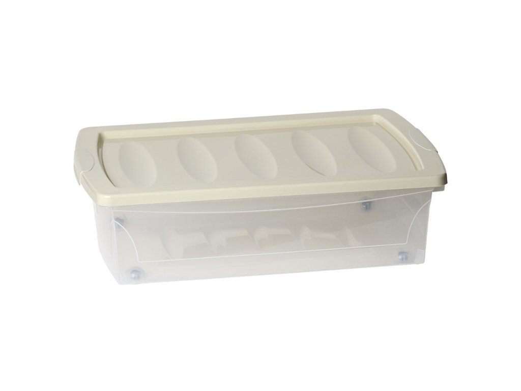 Průhledný plastový úložný box s víkem a kolečky nabízí mnoho možností. Slouží k přehlednému uložení věcí ve vaší domácnosti, dílně i firmě.