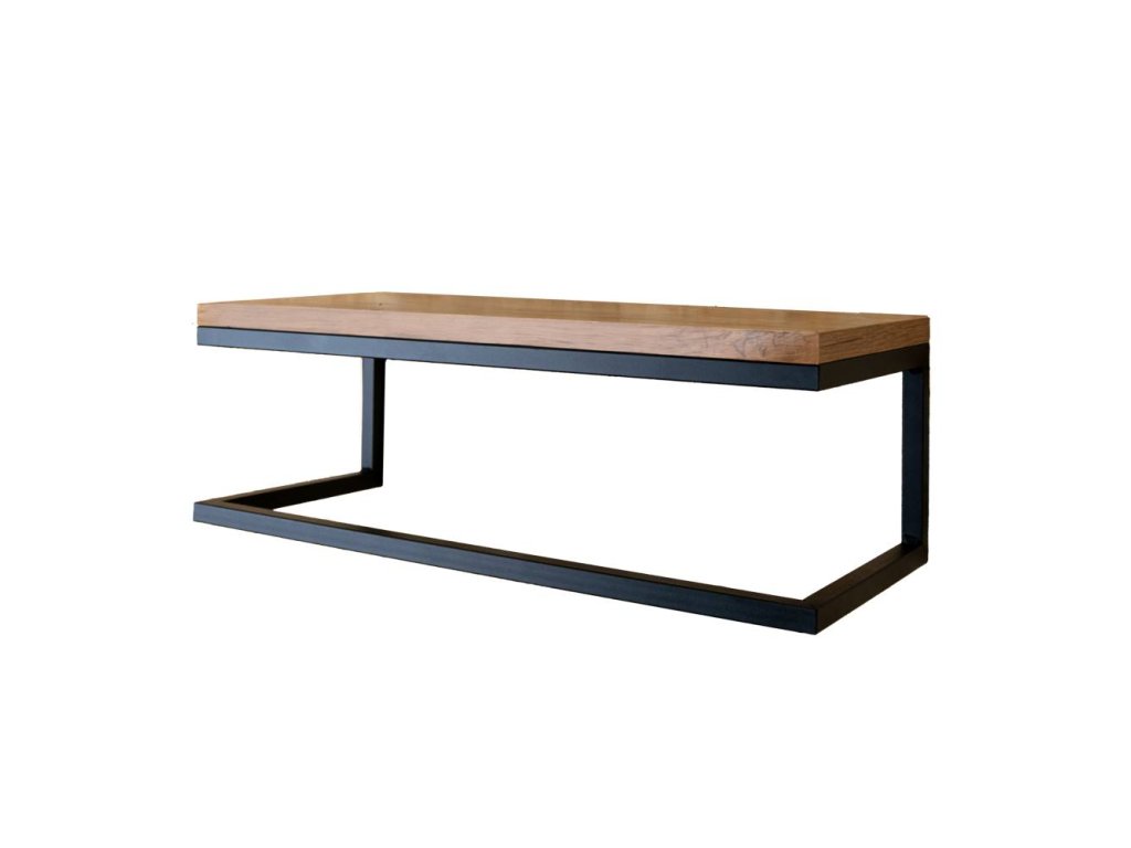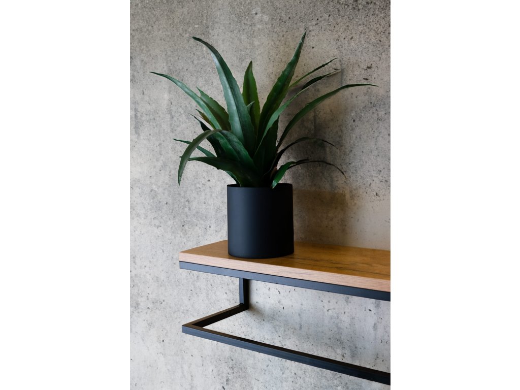 Závěsná police v kombinaci kovové konstrukce a dřevěné platformy zaujme v každém interiéru.