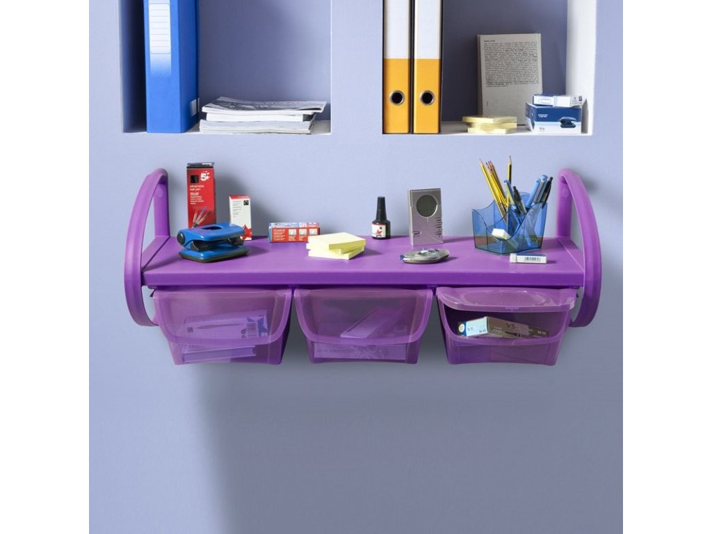 Polička plastová se 3 úložnými boxy, 80 x 30 x 30 cm - barva fialová
