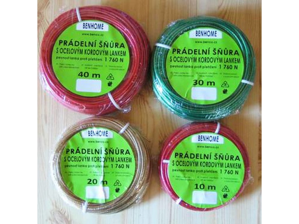 Kvalitní vysokopevnostní šňůry na prádlo s ocelovým kordovým lankem.