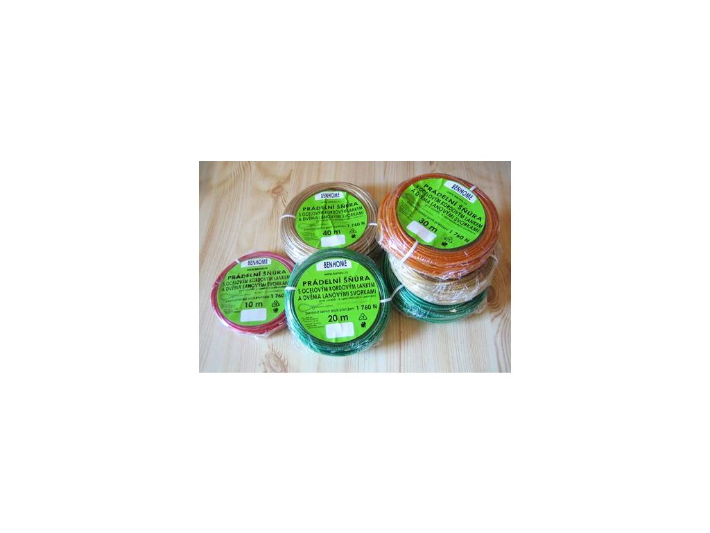 Kvalitní vysokopevnostní šňůry na prádlo s ocelovým kordovým lankem a svorkami.