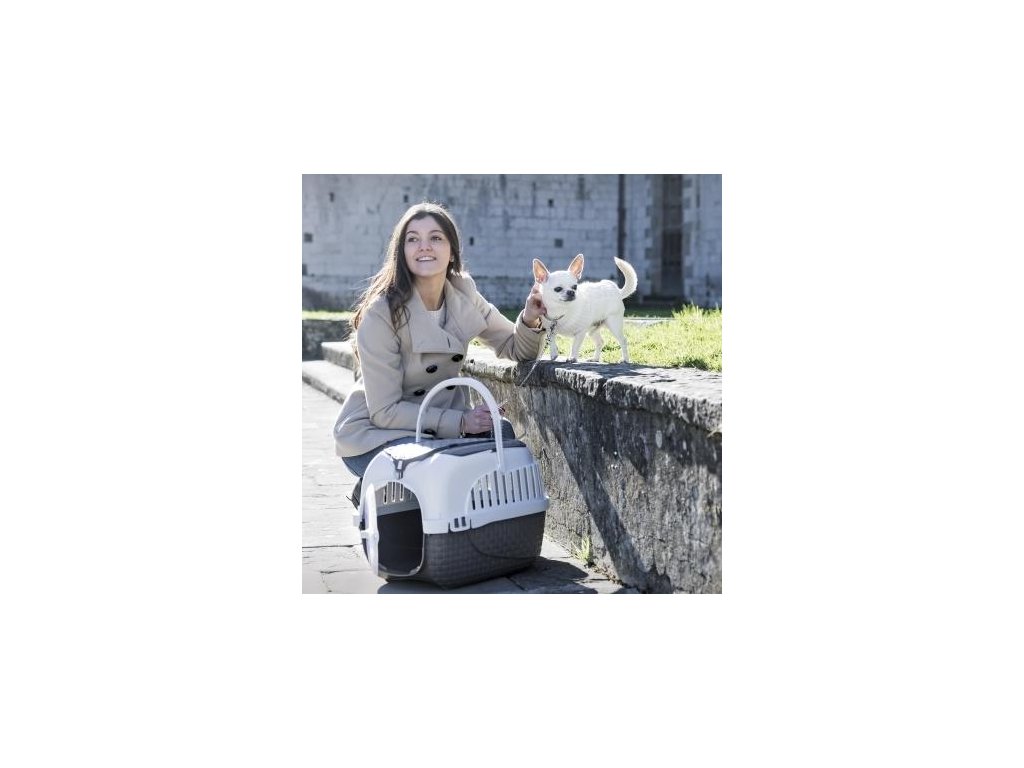 Praktická a elegantní přepravka pro malé psy, kočky, králíčky. Pro krátké i dlouhé cesty s úložným prostorem pro pamlsky vodítko apod.