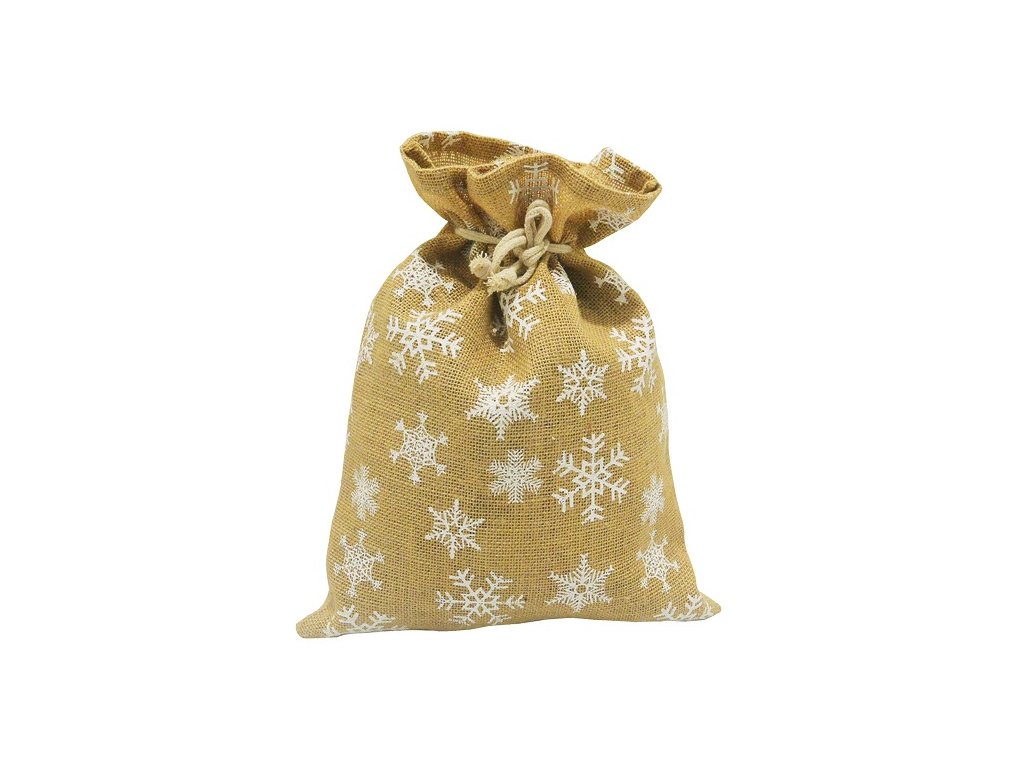 Pytlík jutový s bílými vločkami 27 x 36 cm