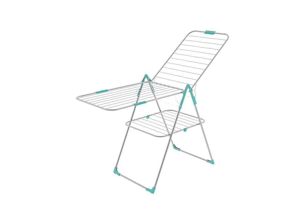 Ocelový skládací sušák na prádlo s nastavitelnými rameny a sušícím patrem pro drobné prádlo. Určen k sušení až 12 kg prádla. Silná konstrukce z lakované oceli s antikorozní úpravou. Sušák dle potřeby snadno složíte nebo rozložíte.