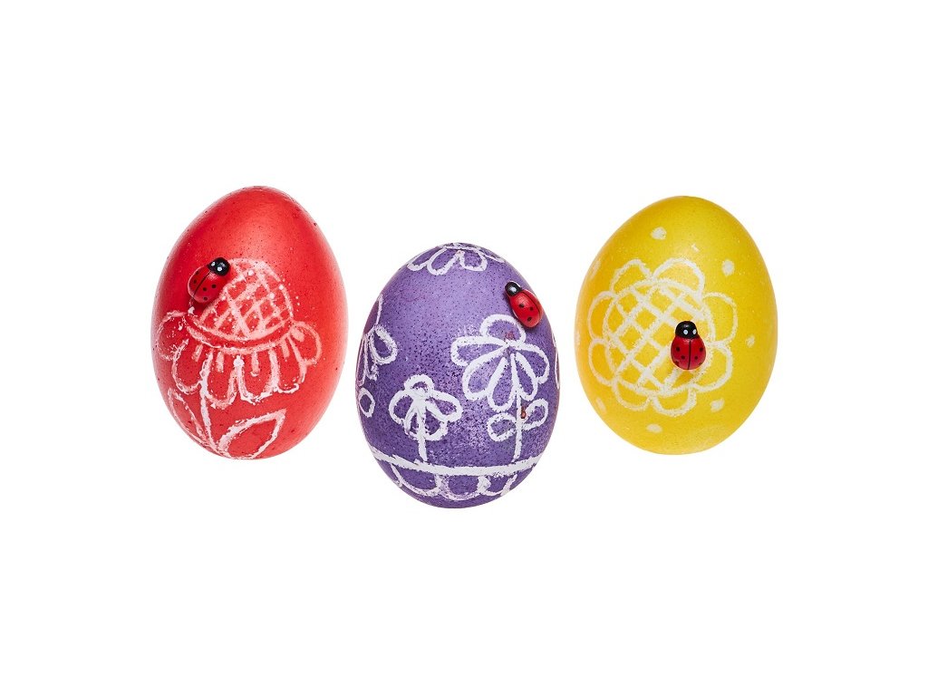 6. Na suché obarvené vajíčko přilepte ozdobnou berušku.