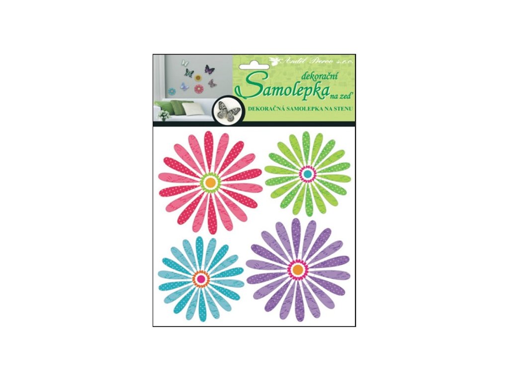 Samolepky na zeď 3D barevné květiny 20x20x1cm, 4ks