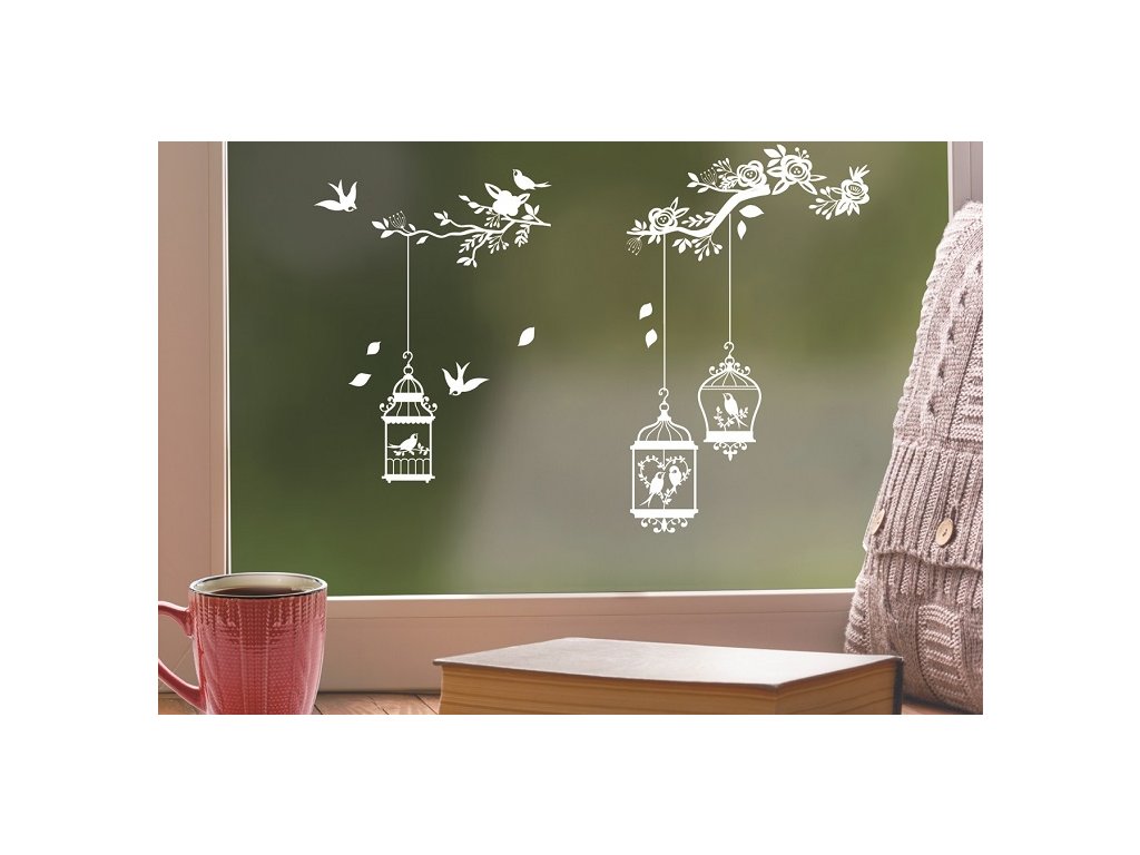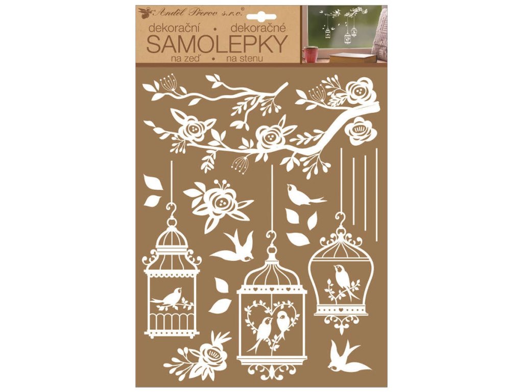 Samolepky na zeď bílé ptačí klece 27,5 x 41 cm