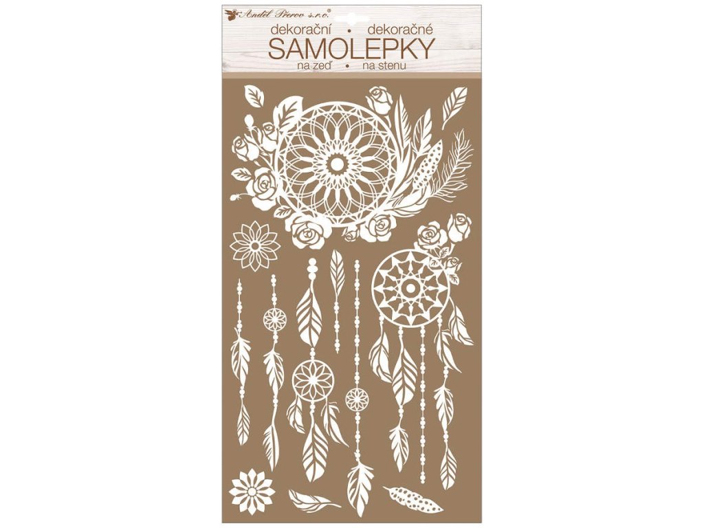 Samolepky na zeď bílý lapač snů s glitry 24 x 47,5 cm