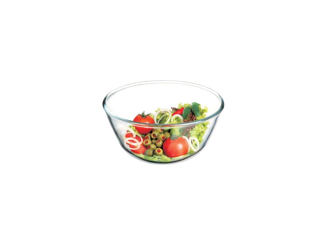 Skleněná mísa ze silnostěnného čiré skla. Vhodná do mikrovlnné trouby i do myčky na nádobí.