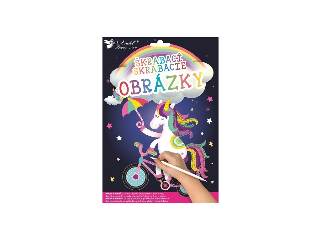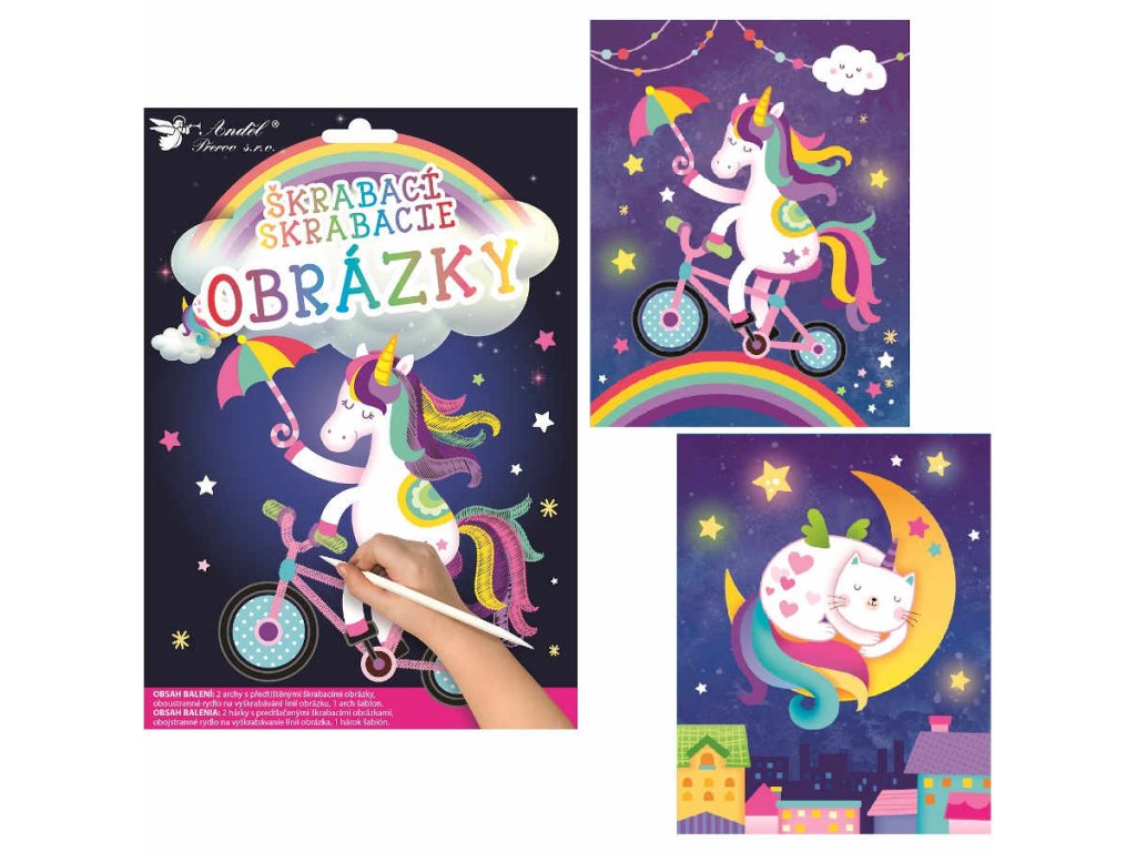 Škrabací obrázky 2 archy 16,5 x 21 cm JEDNOROŽEC