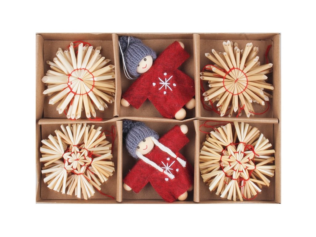 Slaměné ozdoby se skřítky na zavěšení 6 cm, 18 ks